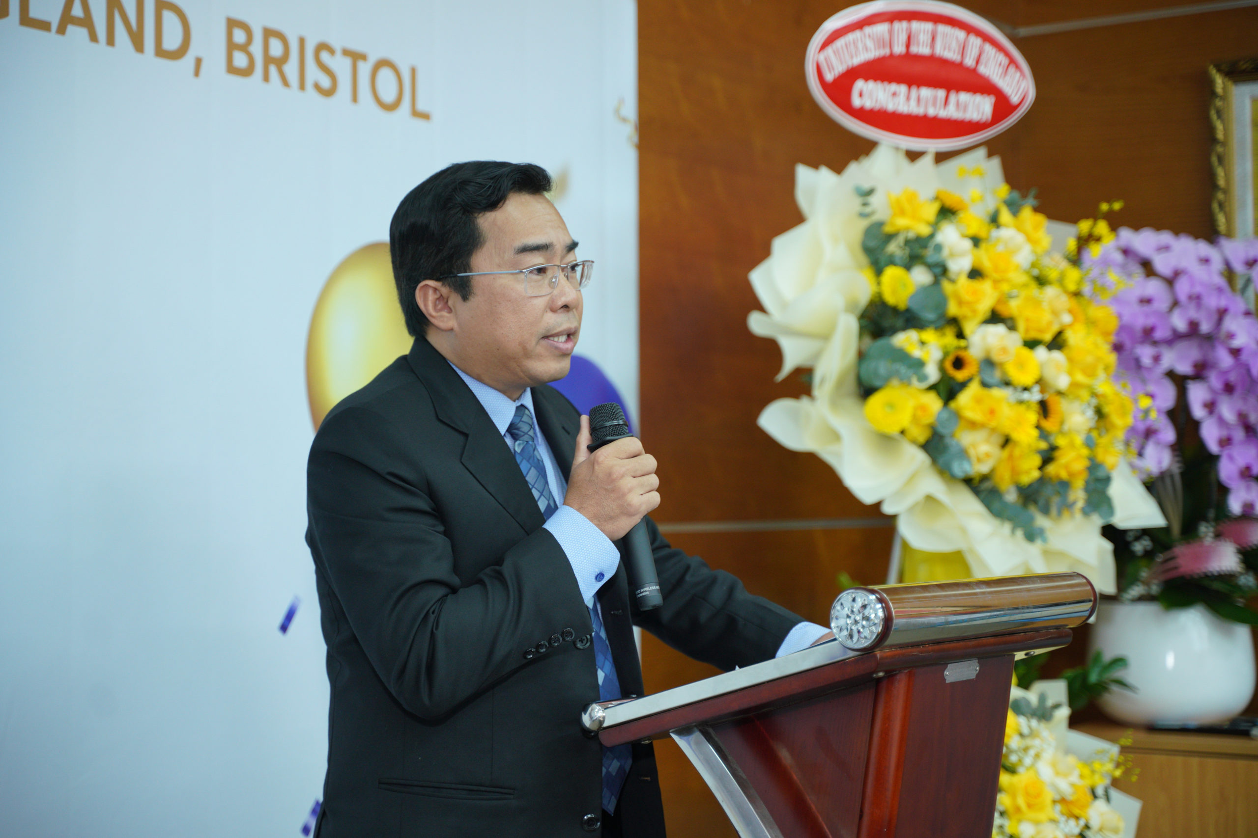 PGS.TS. Đinh Đức Anh Vũ – Phó Hiệu trưởng trường ĐHQT – phát biểu khai mạc Lễ kỷ niệm 20 năm hợp tác giữa trường ĐHQT và UWE.