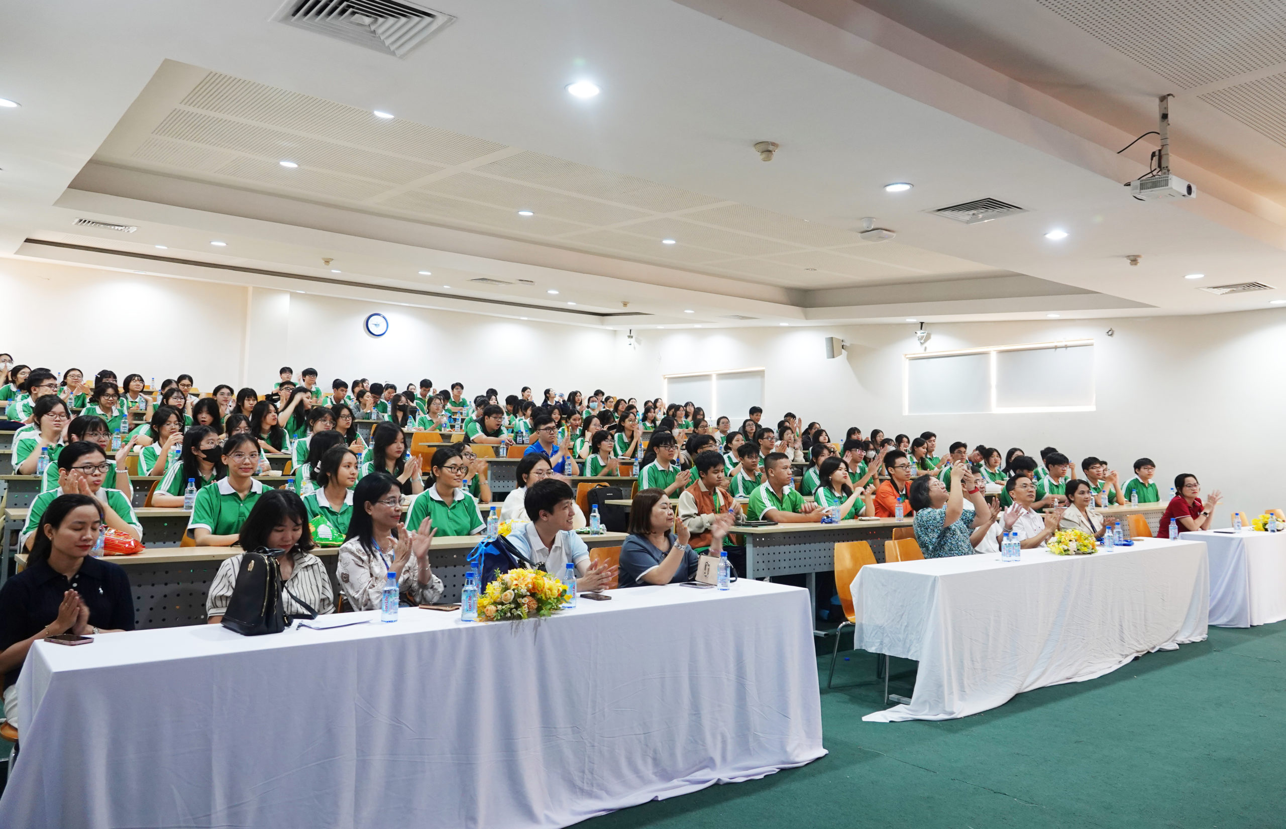 PGS. TS. Nguyễn Ngọc Duy Phương – Trưởng Phòng Quan hệ đối ngoại trường ĐHQT – cho biết: “Chuỗi chương trình bài giảng đại chúng của trường Đại học Quốc tế thực hiện năm 2025 đã bắt đầu vào tháng 6 và kéo dài đến hết năm 2025 với nhiều đề tài thú vị với phần trình bày của các giảng viên các Khoa, Bộ môn cũng như các diễn giả nổi tiếng ngoài trường. Tháng 6, 7, 8, 9 chúng tôi đã thực hiện thành công 4 chương trình với sự tham gia của gần hơn 600 học sinh của các trường THPT. Tháng 10 này, chúng tôi tiếp tục thực hiện bài giảng với 2 chủ đề “Thanh niên Việt Nam ứng phó với Biến đổi khí hậu” và “Ứng dụng công nghệ trong việc học các kỹ năng tiếng Anh”. Và tháng cuối năm 2025, chúng tôi sẽ thực hiện tiếp chương trình với chủ đề “Quản lý tài chính cá nhân” (tháng 12). Tất cả đều mong muốn đem lại cho các em học sinh những hiểu biết chính xác về các ngành nghề để các em có cho mình những định hướng đúng đắn, phù hợp với đam mê và năng lực của chính các em.”