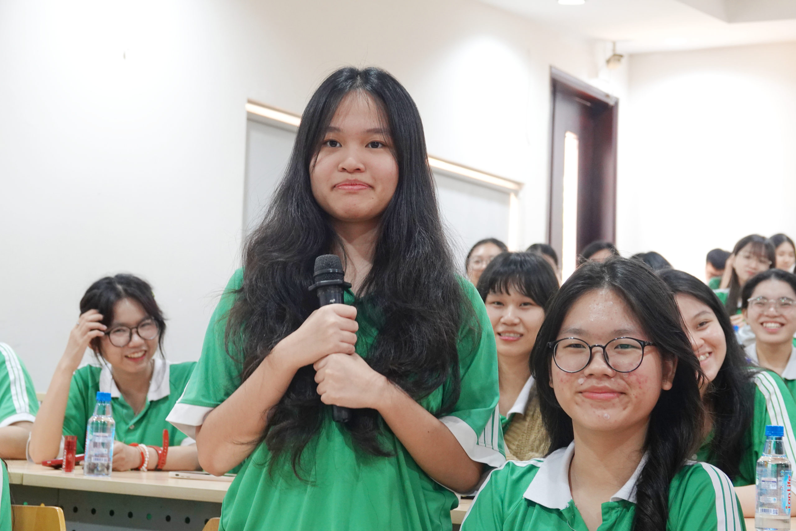 Để khép lại chương trình, ThS. Đỗ Hoàng Nga dành thời gian để nói về khía cạnh vai trò và tầm quan trọng của công nghệ thông tin cũng như những tác hại mà công nghệ gây ra trong việc học hỏi và nghiên cứu. Chiếc điện thoại có thể làm các bạn học sinh sao nhãng trong việc học và cũng có thể lưu truyền thông tin sai sự thật. Cô nhấn mạnh tầm quan trọng của việc xác thực thông tin do AI tạo ra để tránh bị phụ thuộc và dần mất đi tư duy phản biện của mình trước các thông tin này. Ngoài ra, ThS. Nga còn khuyên các bạn nên tìm hiểu thêm về các thiết bị của mình để có thể sử dụng chúng một cách an toàn, phục vụ việc học chủ động và dần thích ứng với môi trường chuyển đổi số hiện tại.
