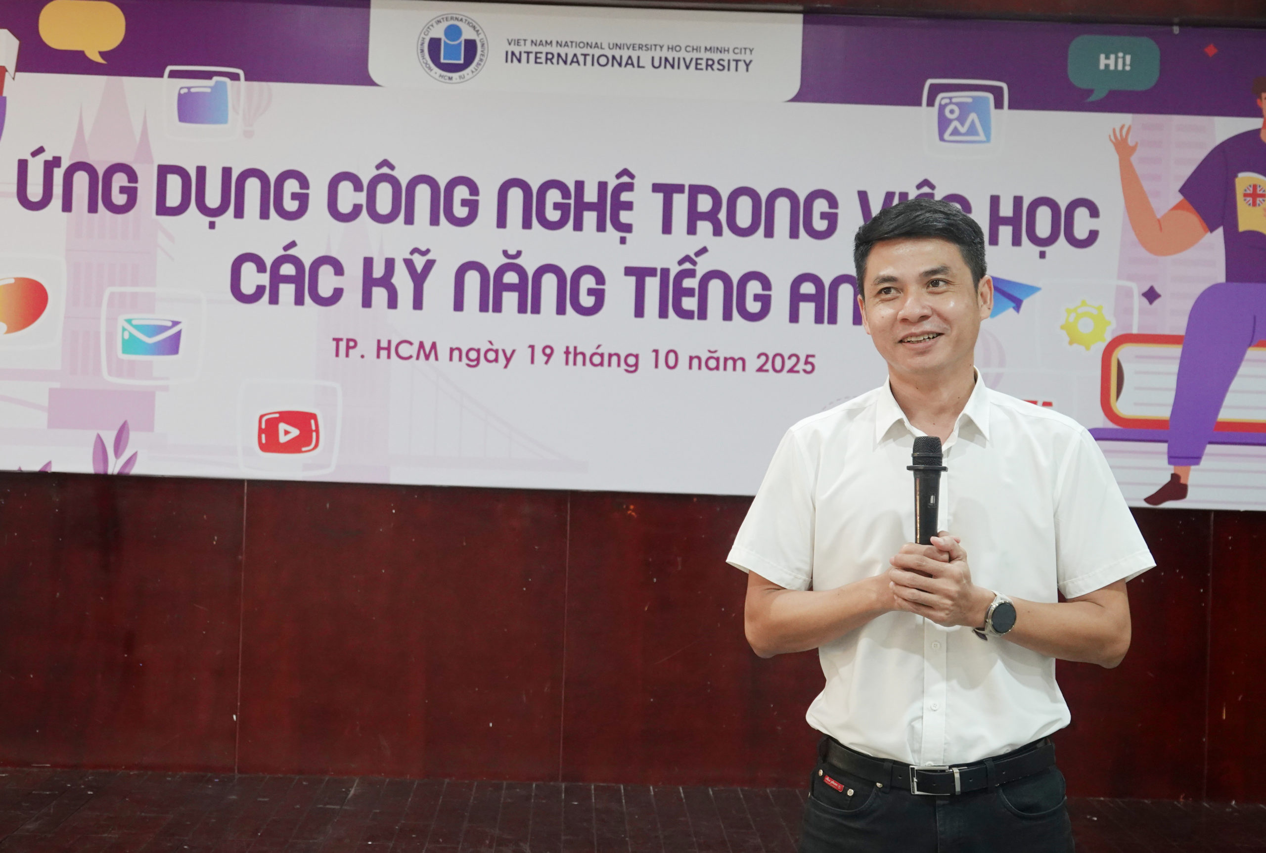 Sáng 19/10/2025, trường Đại học Quốc tế (ĐHQT) – Đại học Quốc gia Thành phố Hồ Chí Minh tổ chức chương trình bài giảng đại chúng tháng 10 với chuyên đề “Ứng dụng công nghệ trong việc học các kỹ năng tiếng Anh” với phần trình bày hấp dẫn từ ThS. Đỗ Hoàng Nga – Giảng viên Khoa Ngôn ngữ.