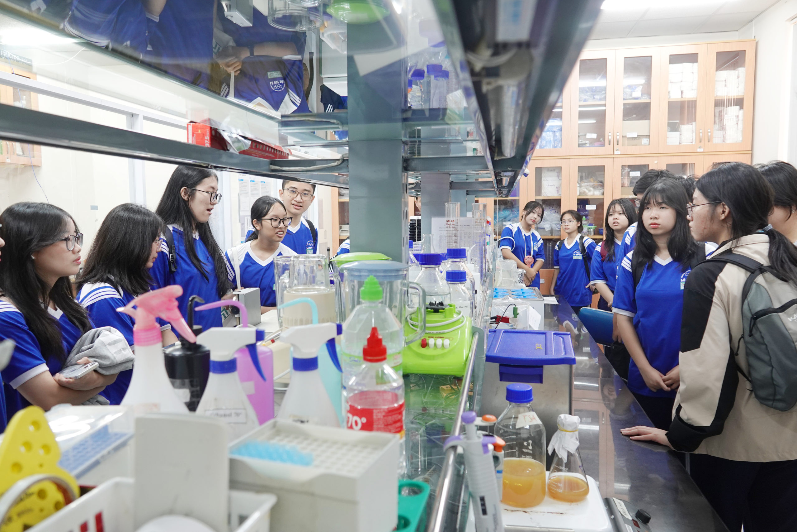 Các em học sinh trường THPT Lê Quý Đôn tham quan phòng Lab của Khoa Kỹ thuật Hóa học & Môi trường và một số phòng lab trọng điểm của trường Đại học Quốc tế.
