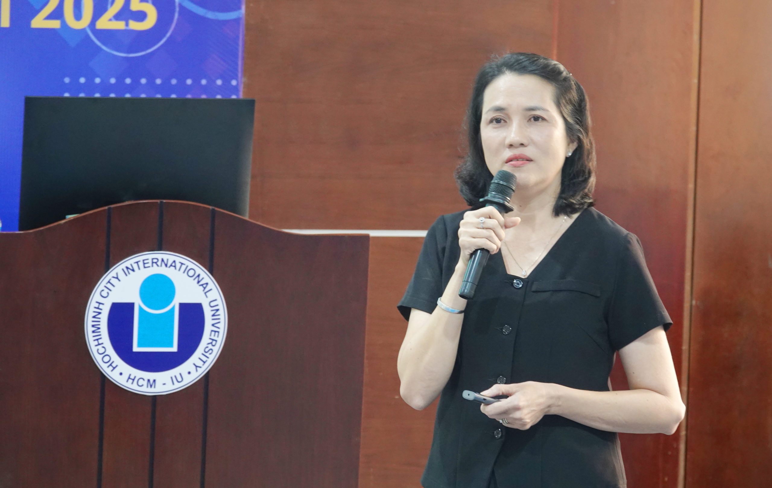 Tham luận cuối với phần chia sẻ của ThS. Nguyễn Thị Bích Ngọc, đại diện phòng Quan hệ đối ngoại, về chuỗi chương trình bài giảng đại chúng – trò chuyện cùng chuyên gia. Trong năm 2025, các chương trình bài giảng đại chúng đã thành công tổ chức (6/7 chương trình đã diễn ra, thu hút hơn 850 học sinh tham dự trực tiếp). Theo đó, hầu hết các trường THPT đều rất tích cực hưởng ứng những chương trình này vì mang tính giáo dục và thực tiễn cho các bạn học sinh tham gia. Ngoài ra, các bạn học sinh đến thăm trường đồng nghĩa với việc các bạn có cơ hội tiếp cận và trải nghiệm các cơ sở vật chất của trường. Chương trình cũng là cơ hội đặc biệt để trường ĐHQT và các trường THPT gắn kết hơn và đồng thời tạo cơ hội cho trường ĐHQT cơ hội quảng bá thương hiệu. Những chương trình trên đều nhận được nhiều phản ánh tích cực từ các bạn học sinh và ban giám hiệu các trường THPT.