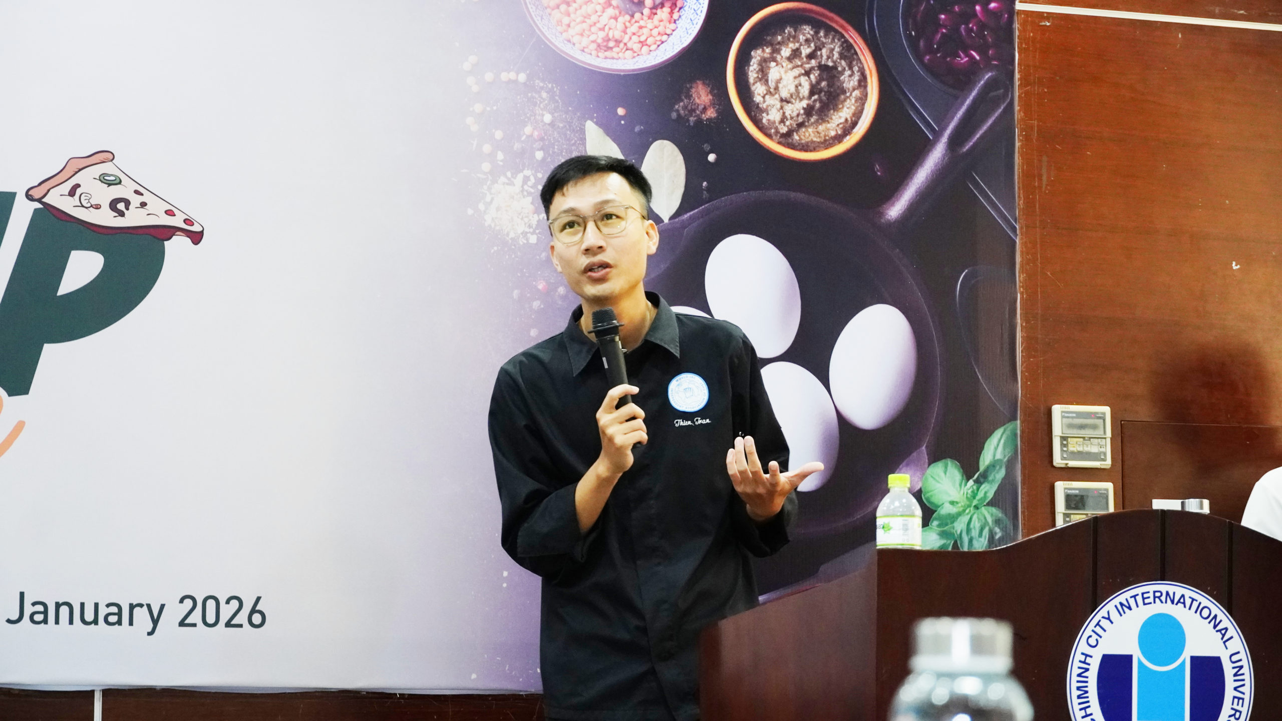 Diễn giả Trần Lê Thanh Thiện – Đầu bếp nổi tiếng trong giảng dạy và nghiên cứu tại trường đại học, với hơn 11 năm kinh nghiệm đào tạo cho thị trường châu Á – chia sẻ tại hội thảo sáng 14/1/2026.