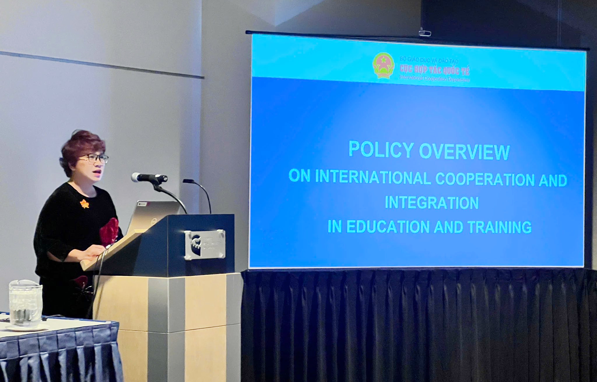 PGS.TS. Nguyễn Thu Thuỷ – Cục trưởng Cục Hợp tác Quốc tế, Bộ Giáo dục và Đào tạo – làm trưởng đoàn Việt Nam, trình bày trong phiên Country Spotlight Session – Vietnam.